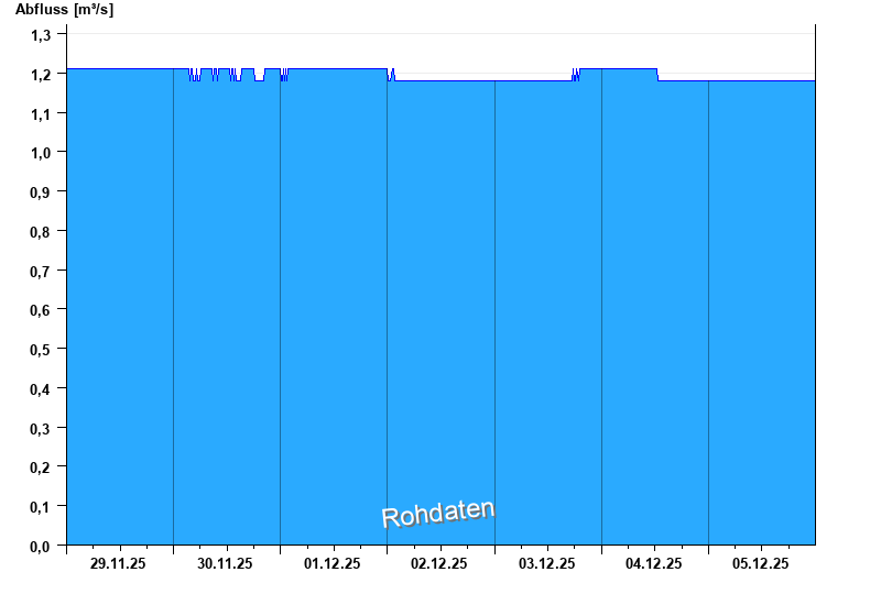 Der Pegel wird durch Baumaßnahmen unterhalb beeinflusst (Rückstau). Entsprechend sind die Abflusswerte nicht korrekt