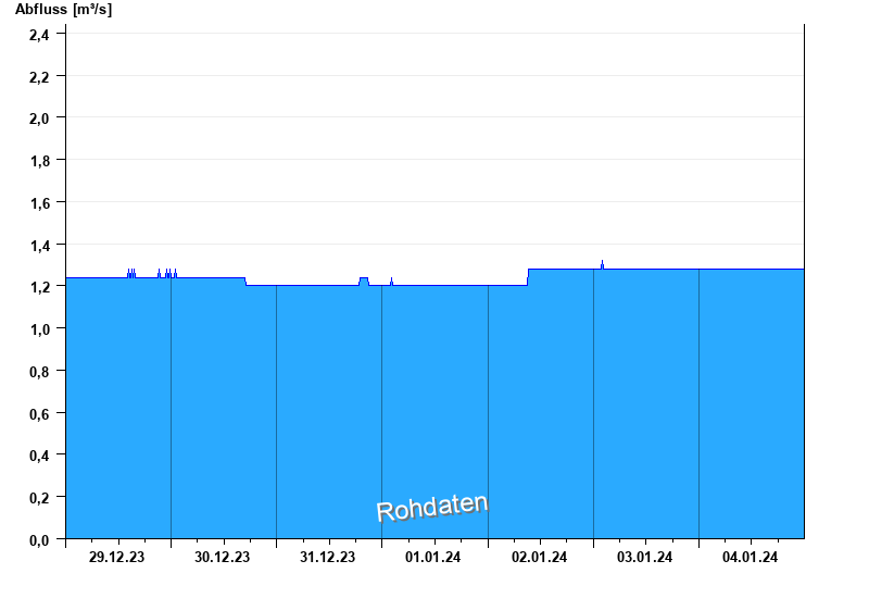 Der Pegel wird durch Baumaßnahmen unterhalb beeinflusst (Rückstau). Entsprechend sind die Abflusswerte nicht korrekt