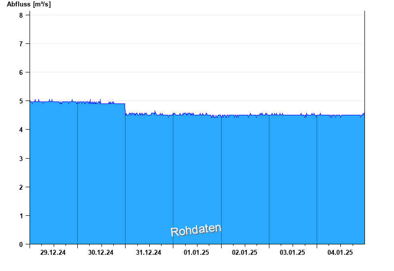 Der Pegel wird durch Baumaßnahmen unterhalb beeinflusst (Rückstau). Entsprechend sind die Abflusswerte nicht korrekt