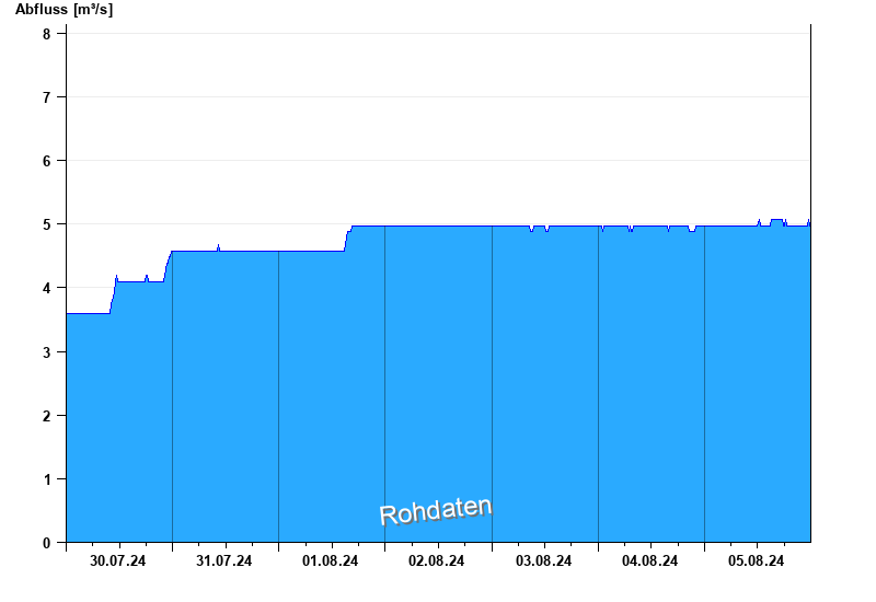 Der Pegel wird durch Baumaßnahmen unterhalb beeinflusst (Rückstau). Entsprechend sind die Abflusswerte nicht korrekt