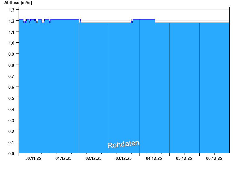 Der Pegel wird durch Baumaßnahmen unterhalb beeinflusst (Rückstau). Entsprechend sind die Abflusswerte nicht korrekt