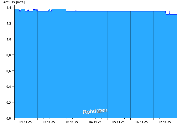 Der Pegel wird durch Baumaßnahmen unterhalb beeinflusst (Rückstau). Entsprechend sind die Abflusswerte nicht korrekt