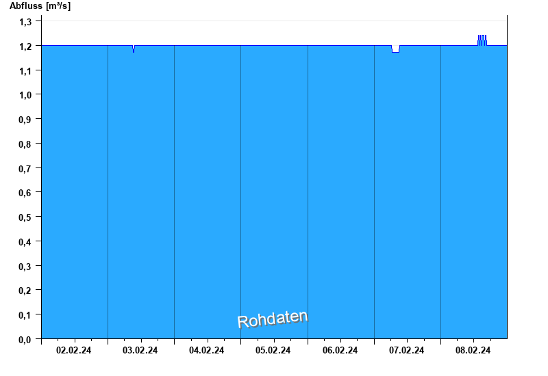 Der Pegel wird durch Baumaßnahmen unterhalb beeinflusst (Rückstau). Entsprechend sind die Abflusswerte nicht korrekt