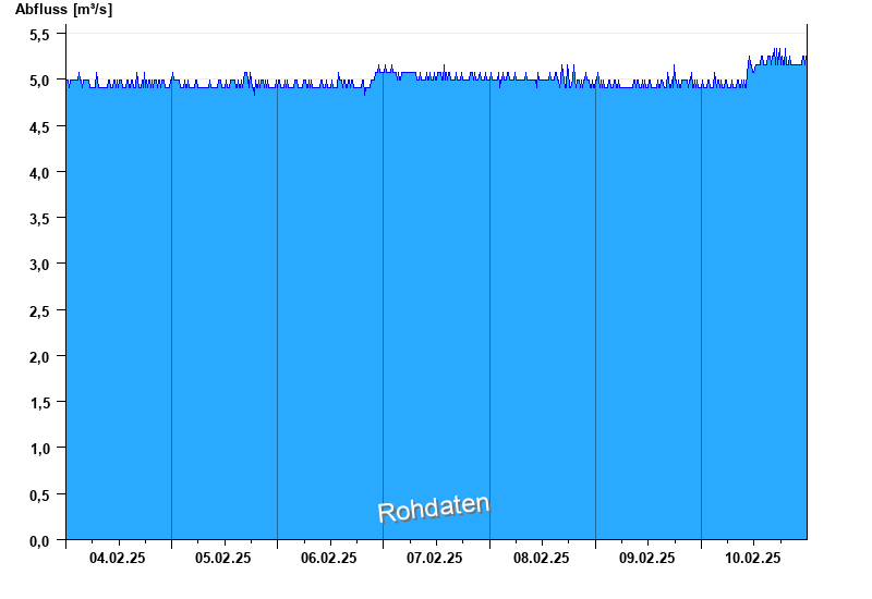 Der Pegel wird durch Baumaßnahmen unterhalb beeinflusst (Rückstau). Entsprechend sind die Abflusswerte nicht korrekt