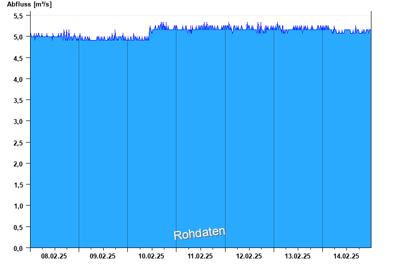 Der Pegel wird durch Baumaßnahmen unterhalb beeinflusst (Rückstau). Entsprechend sind die Abflusswerte nicht korrekt