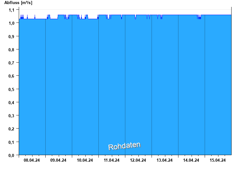 Der Pegel wird durch Baumaßnahmen unterhalb beeinflusst (Rückstau). Entsprechend sind die Abflusswerte nicht korrekt