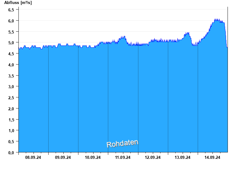 Der Pegel wird durch Baumaßnahmen unterhalb beeinflusst (Rückstau). Entsprechend sind die Abflusswerte nicht korrekt