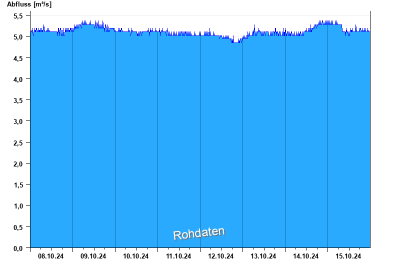 Der Pegel wird durch Baumaßnahmen unterhalb beeinflusst (Rückstau). Entsprechend sind die Abflusswerte nicht korrekt