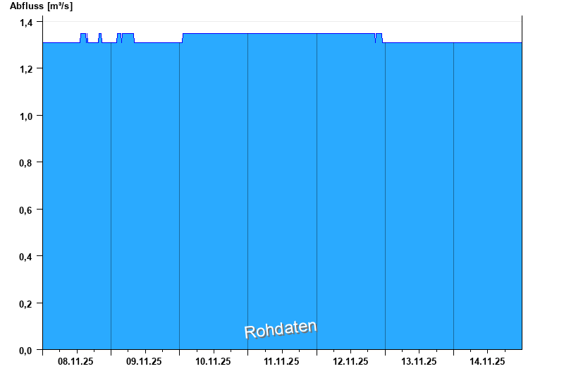 Der Pegel wird durch Baumaßnahmen unterhalb beeinflusst (Rückstau). Entsprechend sind die Abflusswerte nicht korrekt