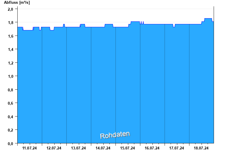 Der Pegel wird durch Baumaßnahmen unterhalb beeinflusst (Rückstau). Entsprechend sind die Abflusswerte nicht korrekt