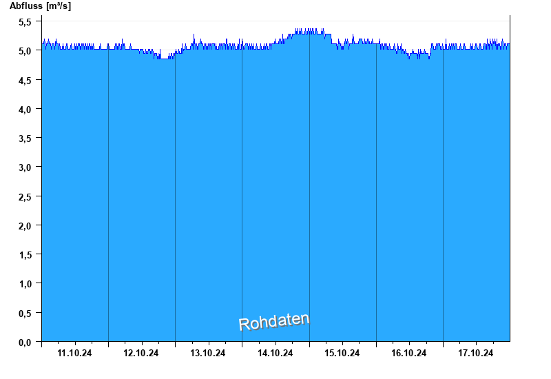 Der Pegel wird durch Baumaßnahmen unterhalb beeinflusst (Rückstau). Entsprechend sind die Abflusswerte nicht korrekt