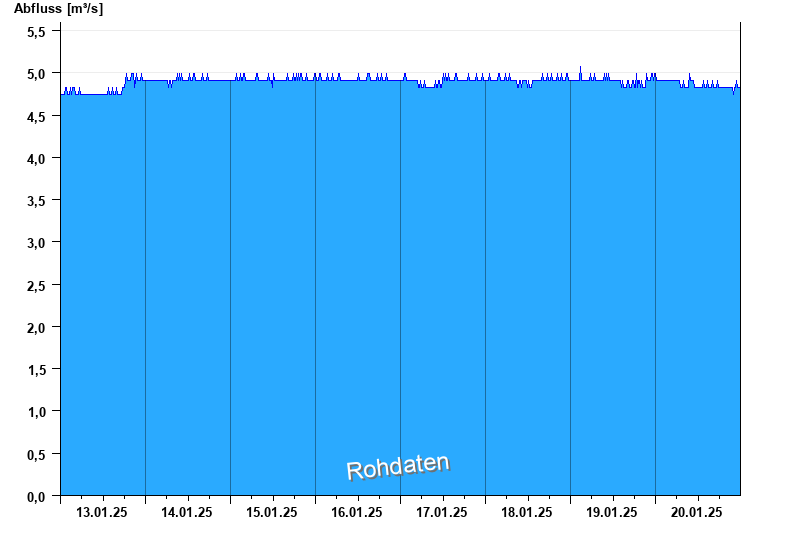 Der Pegel wird durch Baumaßnahmen unterhalb beeinflusst (Rückstau). Entsprechend sind die Abflusswerte nicht korrekt
