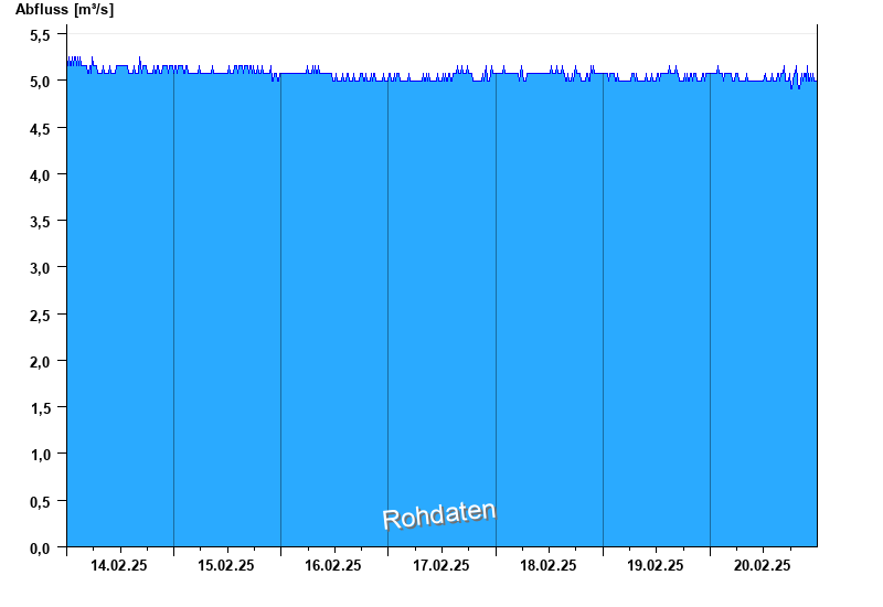 Der Pegel wird durch Baumaßnahmen unterhalb beeinflusst (Rückstau). Entsprechend sind die Abflusswerte nicht korrekt