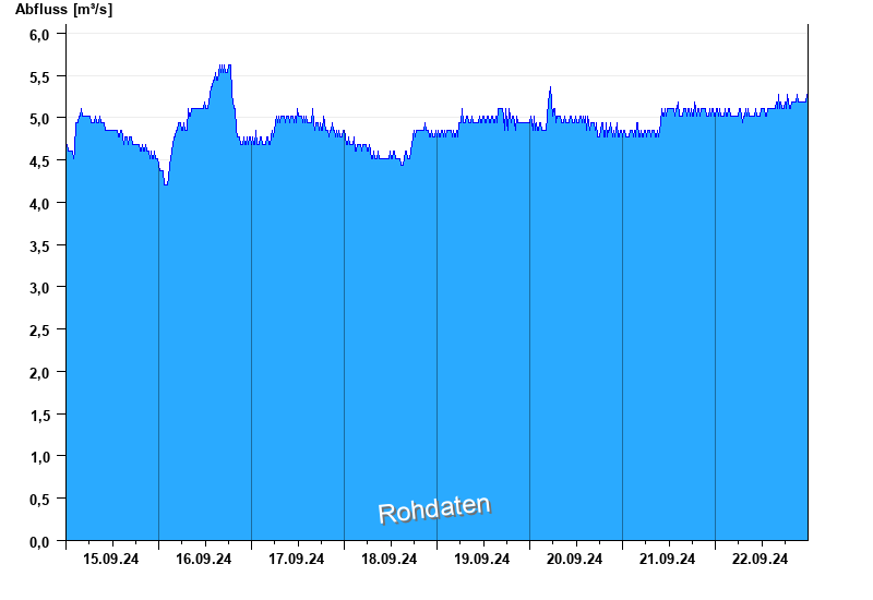 Der Pegel wird durch Baumaßnahmen unterhalb beeinflusst (Rückstau). Entsprechend sind die Abflusswerte nicht korrekt