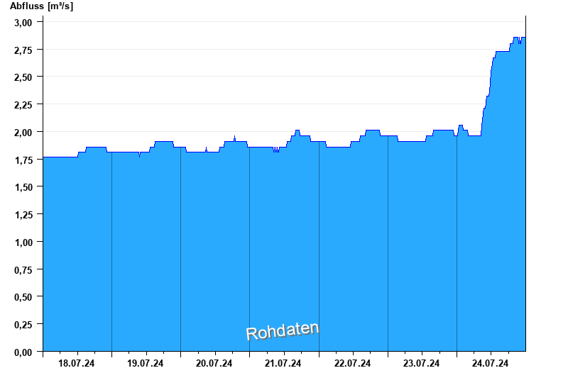 Der Pegel wird durch Baumaßnahmen unterhalb beeinflusst (Rückstau). Entsprechend sind die Abflusswerte nicht korrekt