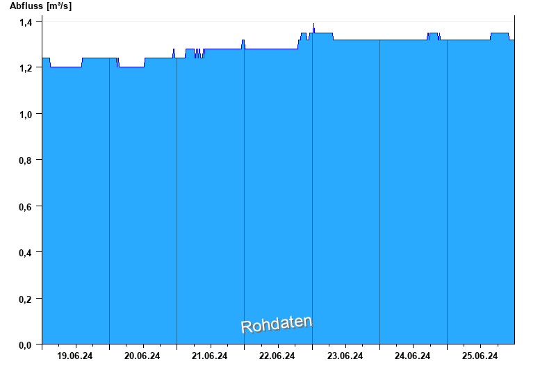 Der Pegel wird durch Baumaßnahmen unterhalb beeinflusst (Rückstau). Entsprechend sind die Abflusswerte nicht korrekt