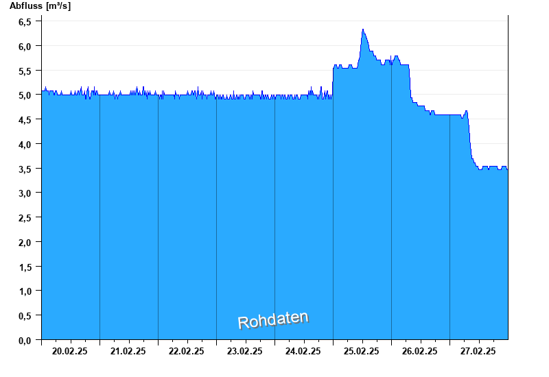 Der Pegel wird durch Baumaßnahmen unterhalb beeinflusst (Rückstau). Entsprechend sind die Abflusswerte nicht korrekt
