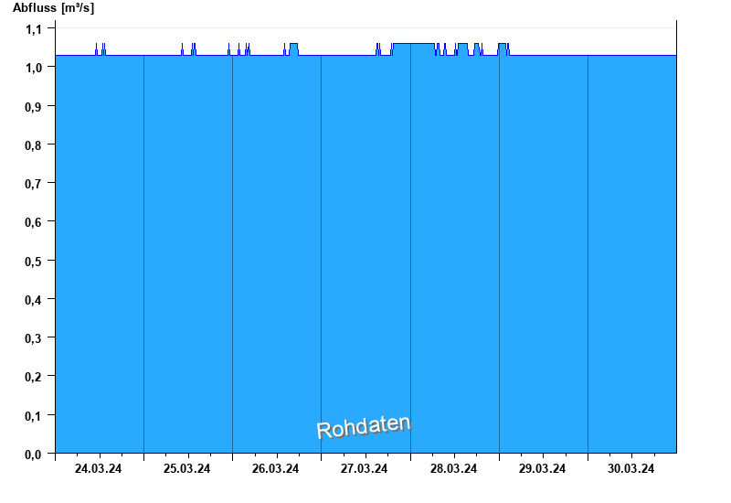Der Pegel wird durch Baumaßnahmen unterhalb beeinflusst (Rückstau). Entsprechend sind die Abflusswerte nicht korrekt