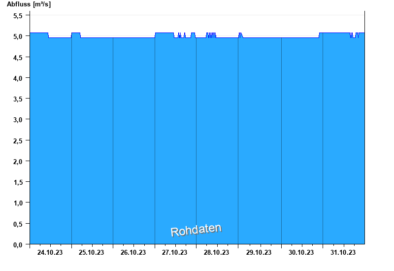 Der Pegel wird durch Baumaßnahmen unterhalb beeinflusst (Rückstau). Entsprechend sind die Abflusswerte nicht korrekt