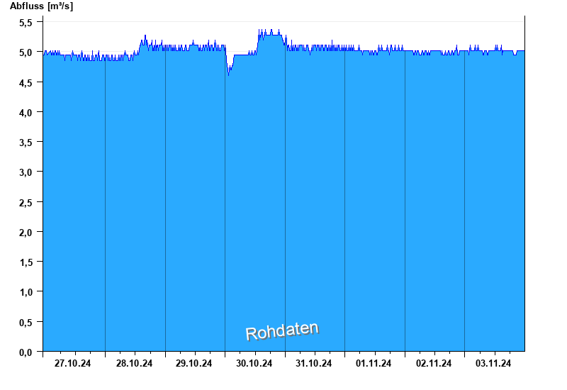 Der Pegel wird durch Baumaßnahmen unterhalb beeinflusst (Rückstau). Entsprechend sind die Abflusswerte nicht korrekt