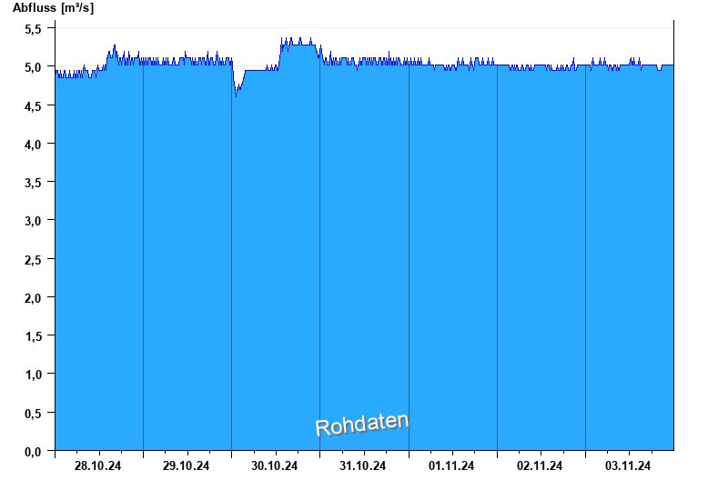 Der Pegel wird durch Baumaßnahmen unterhalb beeinflusst (Rückstau). Entsprechend sind die Abflusswerte nicht korrekt