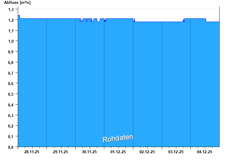Der Pegel wird durch Baumaßnahmen unterhalb beeinflusst (Rückstau). Entsprechend sind die Abflusswerte nicht korrekt