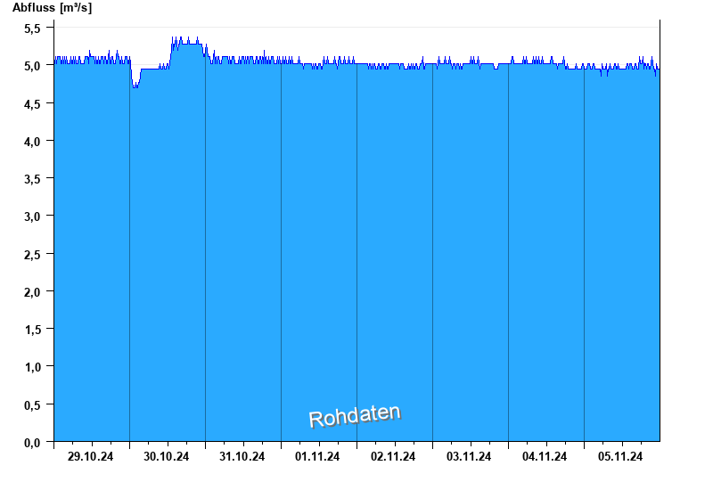 Der Pegel wird durch Baumaßnahmen unterhalb beeinflusst (Rückstau). Entsprechend sind die Abflusswerte nicht korrekt