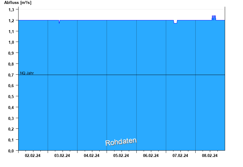 Der Pegel wird durch Baumaßnahmen unterhalb beeinflusst (Rückstau). Entsprechend sind die Abflusswerte nicht korrekt