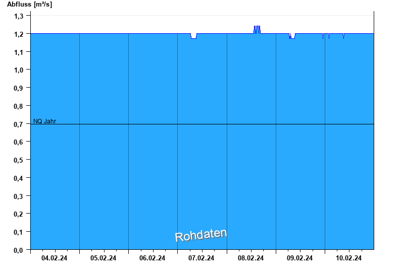 Der Pegel wird durch Baumaßnahmen unterhalb beeinflusst (Rückstau). Entsprechend sind die Abflusswerte nicht korrekt