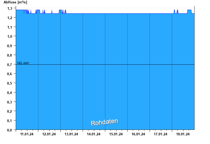 Der Pegel wird durch Baumaßnahmen unterhalb beeinflusst (Rückstau). Entsprechend sind die Abflusswerte nicht korrekt