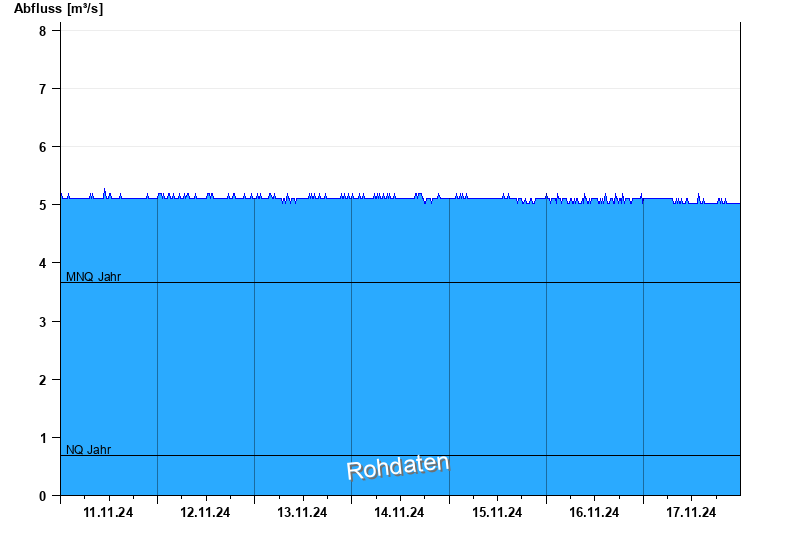 Der Pegel wird durch Baumaßnahmen unterhalb beeinflusst (Rückstau). Entsprechend sind die Abflusswerte nicht korrekt
