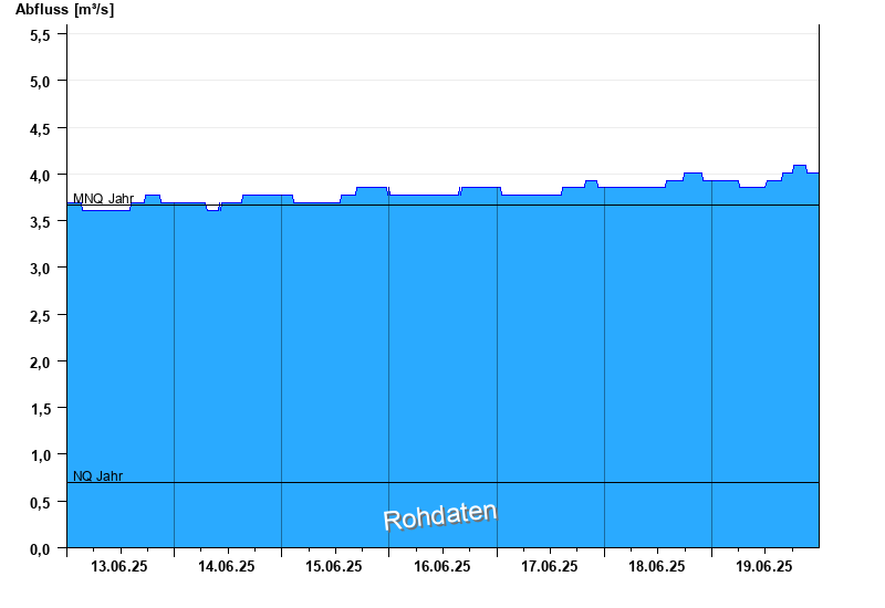 - Mittlerer Niedrigwasserabfluss MNQ 3,67 m³/s