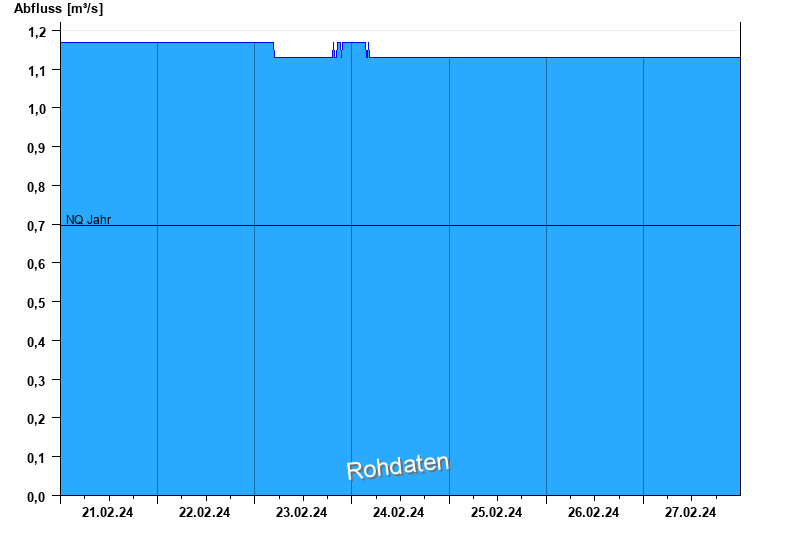 Der Pegel wird durch Baumaßnahmen unterhalb beeinflusst (Rückstau). Entsprechend sind die Abflusswerte nicht korrekt
