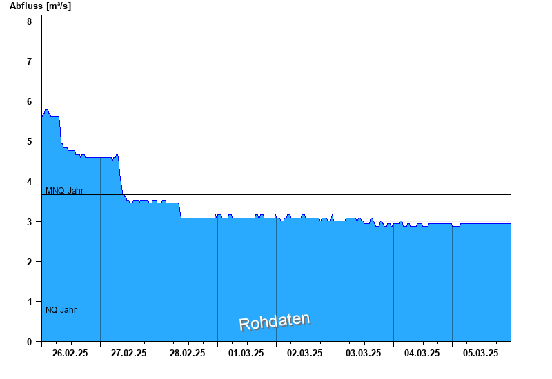 - Mittlerer Niedrigwasserabfluss MNQ 3,67 m³/s
