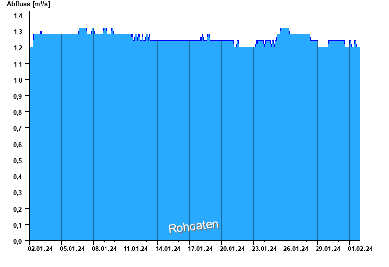 Der Pegel wird durch Baumaßnahmen unterhalb beeinflusst (Rückstau). Entsprechend sind die Abflusswerte nicht korrekt