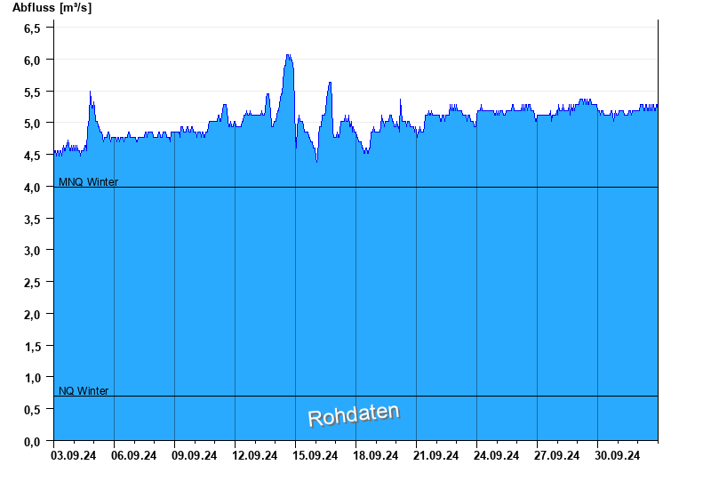 - Mittlerer Niedrigwasserabfluss MNQ 3,99 m³/s