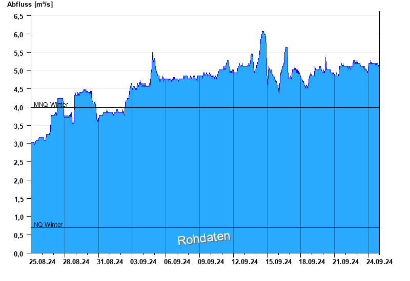 - Mittlerer Niedrigwasserabfluss MNQ 3,99 m³/s