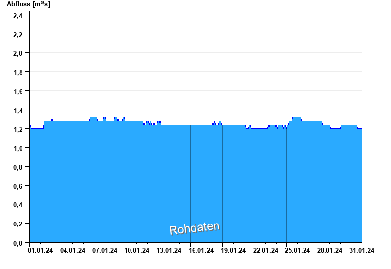 Der Pegel wird durch Baumaßnahmen unterhalb beeinflusst (Rückstau). Entsprechend sind die Abflusswerte nicht korrekt
