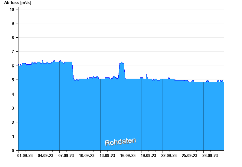 Der Pegel wird durch Baumaßnahmen unterhalb beeinflusst (Rückstau). Entsprechend sind die Abflusswerte nicht korrekt