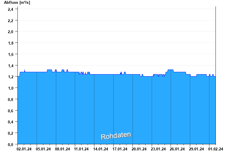 Der Pegel wird durch Baumaßnahmen unterhalb beeinflusst (Rückstau). Entsprechend sind die Abflusswerte nicht korrekt