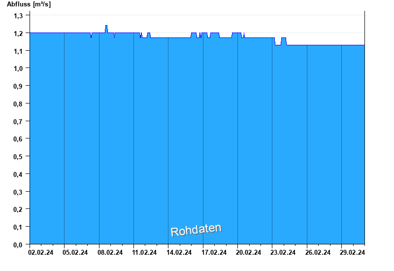 Der Pegel wird durch Baumaßnahmen unterhalb beeinflusst (Rückstau). Entsprechend sind die Abflusswerte nicht korrekt