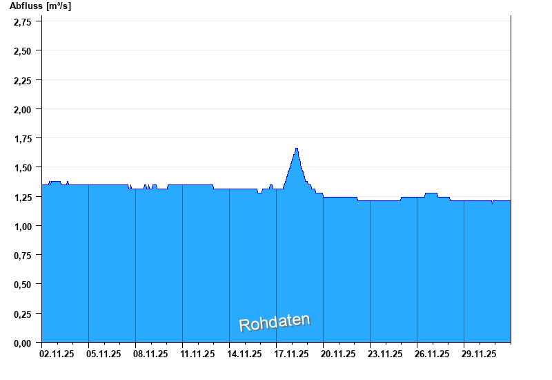 Der Pegel wird durch Baumaßnahmen unterhalb beeinflusst (Rückstau). Entsprechend sind die Abflusswerte nicht korrekt