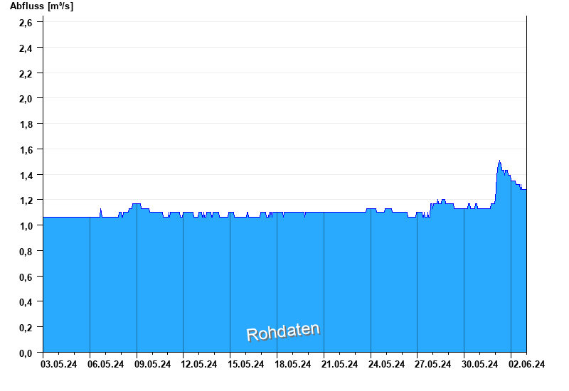 Der Pegel wird durch Baumaßnahmen unterhalb beeinflusst (Rückstau). Entsprechend sind die Abflusswerte nicht korrekt