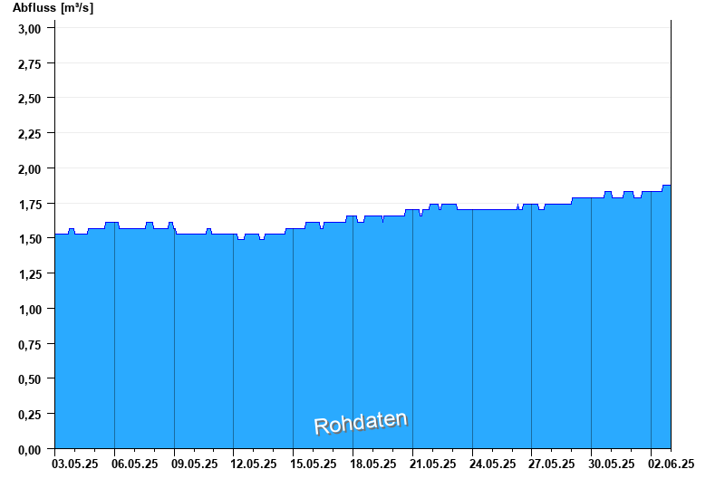 Der Pegel wird durch Baumaßnahmen unterhalb beeinflusst (Rückstau). Entsprechend sind die Abflusswerte nicht korrekt