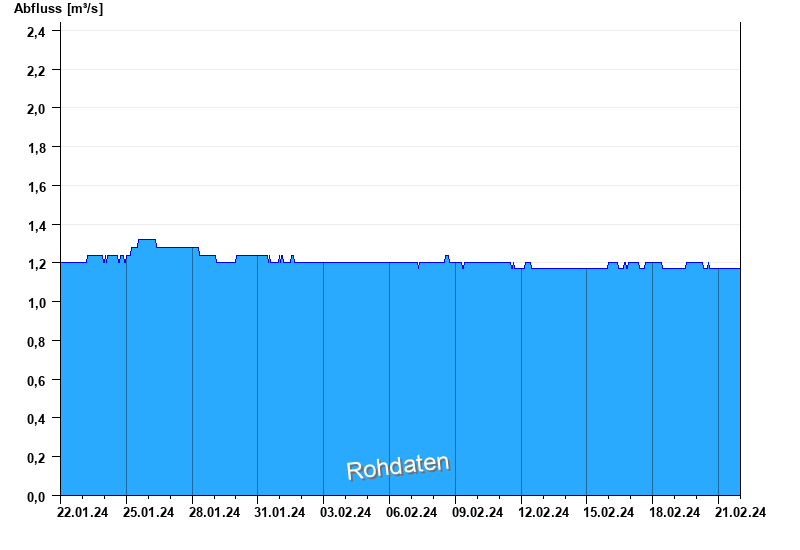 Der Pegel wird durch Baumaßnahmen unterhalb beeinflusst (Rückstau). Entsprechend sind die Abflusswerte nicht korrekt