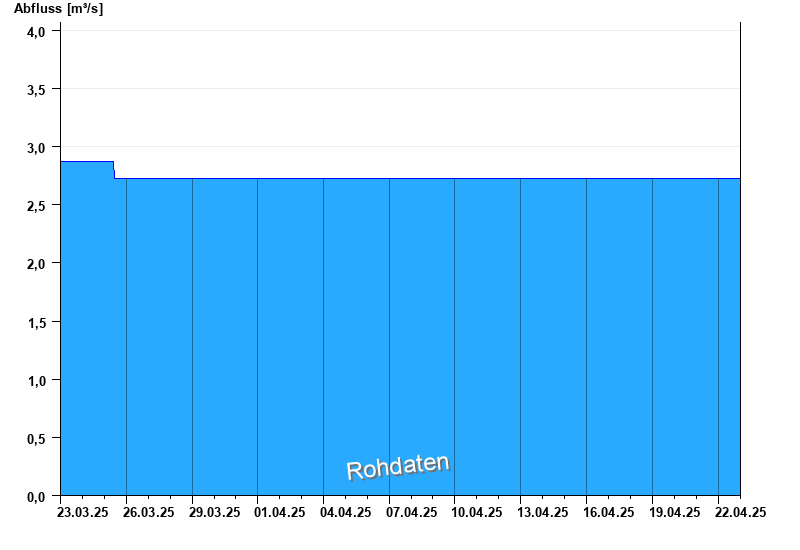 Der Pegel wird durch Baumaßnahmen unterhalb beeinflusst (Rückstau). Entsprechend sind die Abflusswerte nicht korrekt