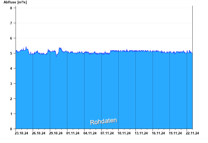 Der Pegel wird durch Baumaßnahmen unterhalb beeinflusst (Rückstau). Entsprechend sind die Abflusswerte nicht korrekt