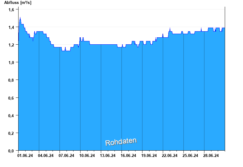 Der Pegel wird durch Baumaßnahmen unterhalb beeinflusst (Rückstau). Entsprechend sind die Abflusswerte nicht korrekt