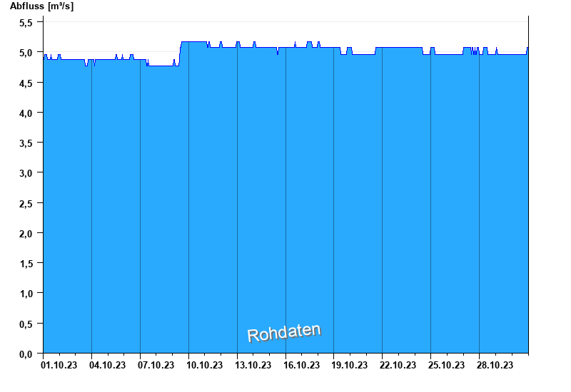 Der Pegel wird durch Baumaßnahmen unterhalb beeinflusst (Rückstau). Entsprechend sind die Abflusswerte nicht korrekt