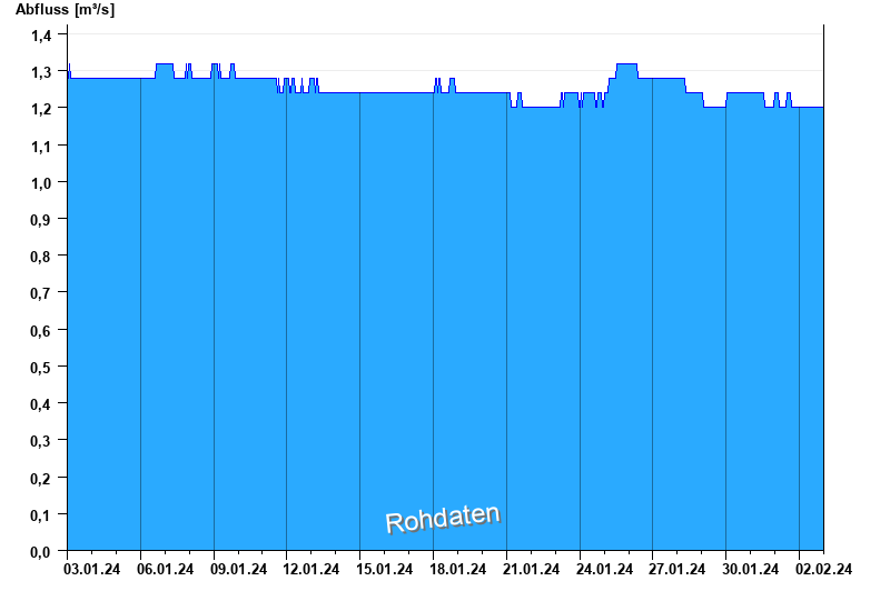 Der Pegel wird durch Baumaßnahmen unterhalb beeinflusst (Rückstau). Entsprechend sind die Abflusswerte nicht korrekt